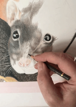 Tierportraits zeichne ich anhand einer Fotovorlage naturgetreu mit Künstler-Farbstifte.